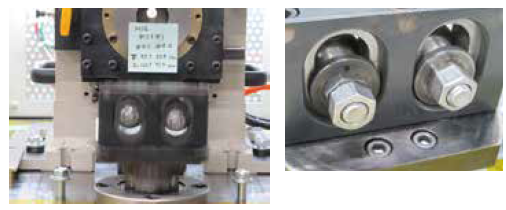 ねじを締めた状態で、ボルト軸直角方向に振動させ、衝撃でねじが緩むかを調べます。